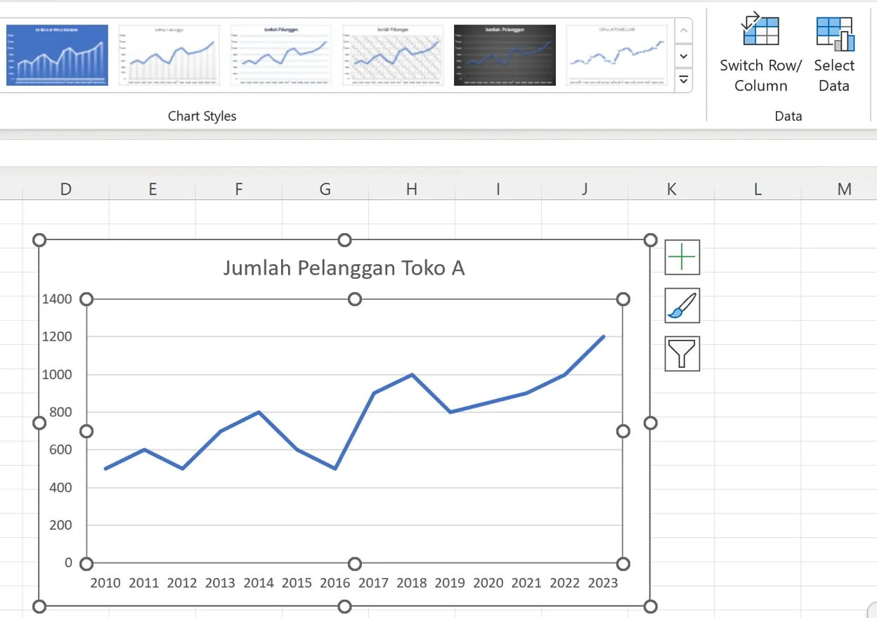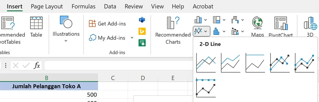 Salah satu cara membuat diagram garis adalah menggunakan Excel. Langkahnya adalah: