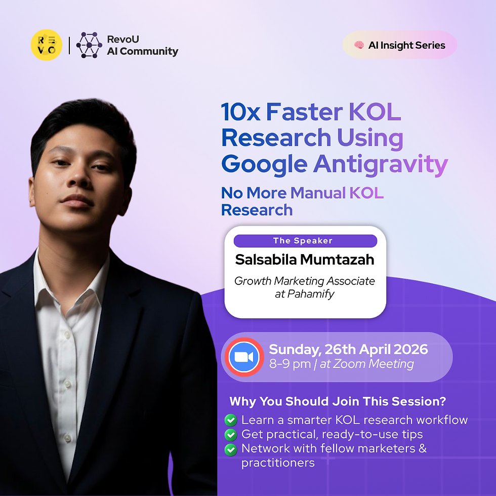 RevoU AI Community is a collaborative space for alumni to learn, grow, and experiment together as AI evolves at a rapid pace. It exists to nurture AI talent by enabling members to share insights, test real-world use cases, and drive practical AI adoption at work.