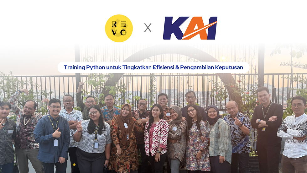 PT Kereta Api Indonesia (Persero) bekerja sama dengan RevoU untuk menghadirkan pelatihan Data Analytics with Python. Pelatihan ini ditujukan bagi tim yang terlibat dalam pengelolaan biaya dan pendapatan, seperti Cash Comptroller, Freight Cost Accounting, dan Revenue & Cost Comptroller.