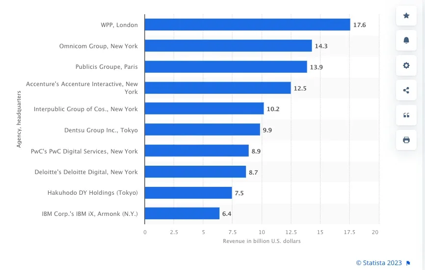 Berdasarkan Statista.com, berikut ini adalah pendapatan agency pemasaran terbesar di tahun 2021: