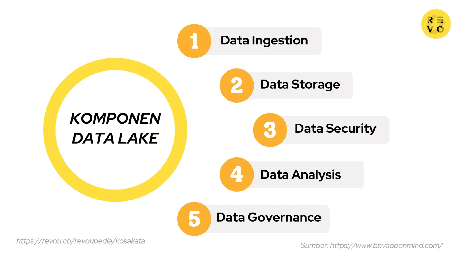 Mengutip dari Prof. Banafa, seorang ahli AI dan blockchain, ada 5 komponen pokok data lake, yaitu: