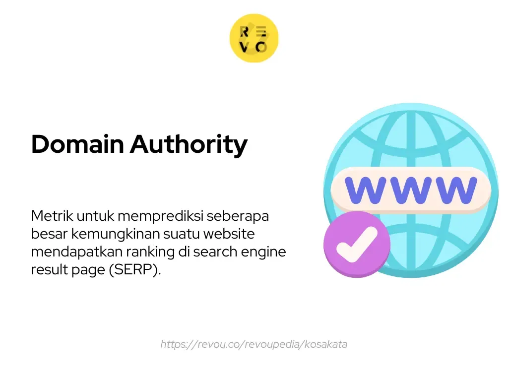 DA atau domain authority adalah metrik untuk memprediksi seberapa besar kemungkinan suatu website mendapatkan ranking di search engine result page (SERP) atau halaman hasil penelusuran. Metrik ini pertama kali dikembangkan oleh Moz, yaitu platform software yang dipakai untuk menjalankan strategi SEO.