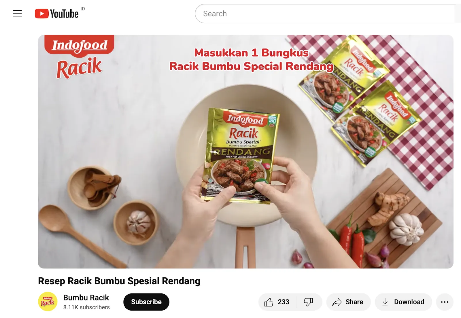 Indofood menggunakan YouTube untuk membagikan video resep yang menggunakan produk mereka, seperti Bumbu Racik Indofood Spesial Rendang. Ini adalah cara menarik perhatian konsumen yang mencari solusi praktis untuk kebutuhan memasak sehari-hari.