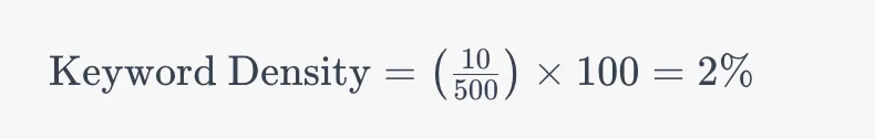 Dinyatakan dalam persentase, semakin tinggi persentasenya, semakin sering keyword tersebut muncul dalam konten. Sebagai contoh, jika keyword muncul 10 kali dalam artikel yang terdiri dari 500 kata, keyword density untuk kata kunci tersebut adalah 2%.
