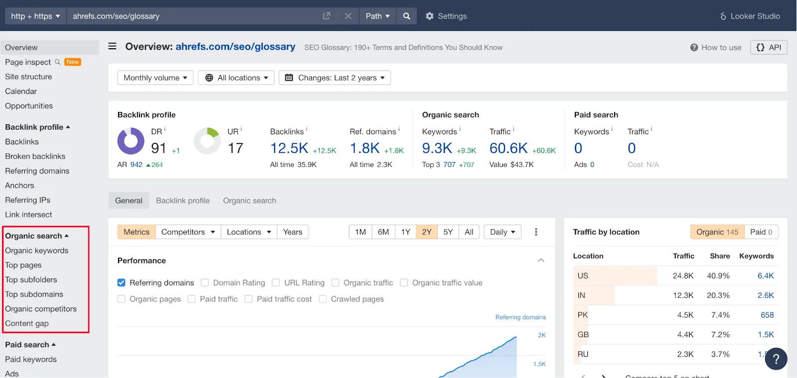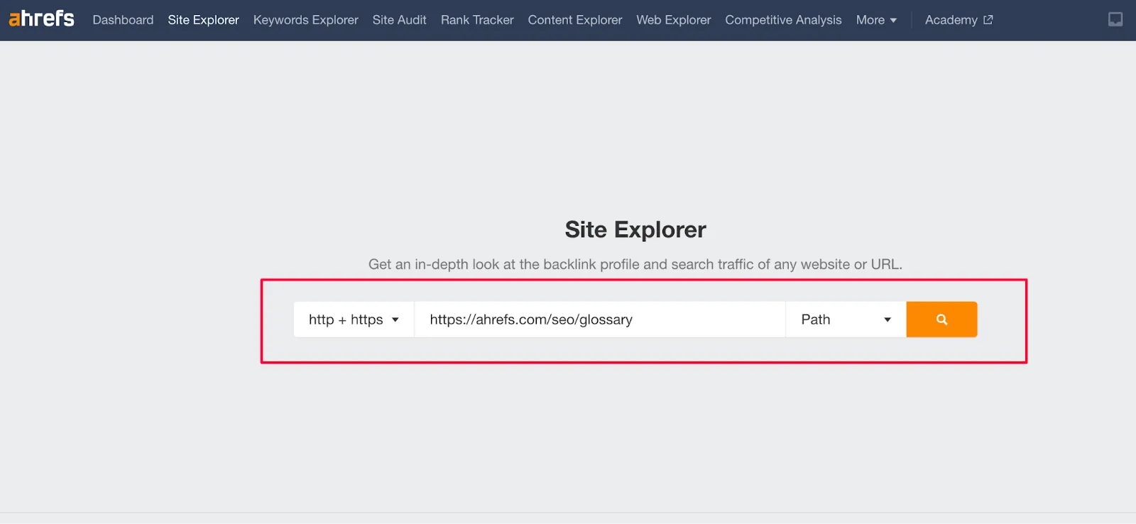 Contoh lain adalah menganalisis kata kunci yang berhasil mendapatkan ranking tinggi di website kompetitor. Hal ini dapat dilakukan dengan memasukkan URL website kompetitor ke bagian “Site Explorer”.