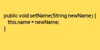 Sementara itu, metode "setName(String newName)" digunakan untuk mengubah nilai variabel "name" menjadi nilai baru yang ditentukan dalam parameter "newName".