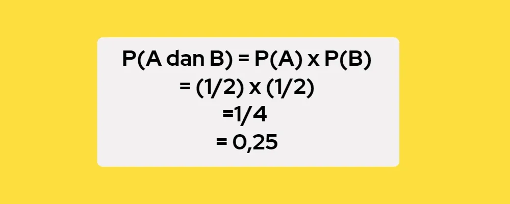 P(A dan B) menyatakan probabilitas kejadian A dan B terjadi bersamaan. P(A) menyatakan probabilitas kejadian A, dan P(B) menyatakan probabilitas kejadian B.