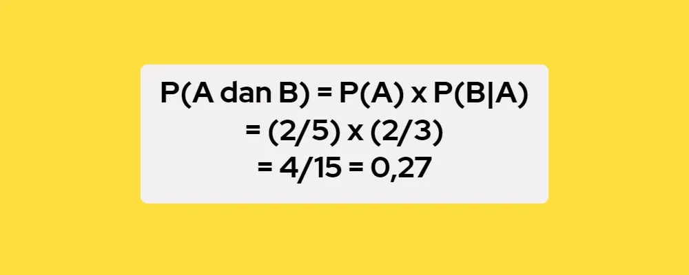 Perlu diperhatikan bahwa kejadian B bergantung pada kejadian A karena hasil pengambilan pertama mempengaruhi probabilitas pengambilan kedua, sehingga: