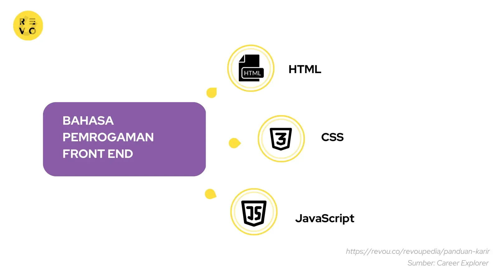 Bahasa pemrograman yang digunakan untuk bagian front end developer adalah HTML, CSS, dan JavaScript.