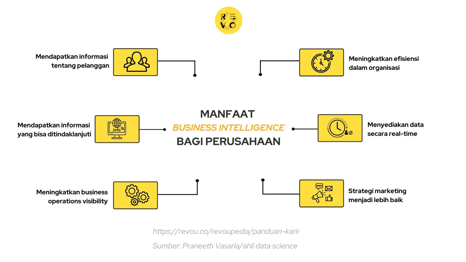 Business intelligence adalah bidang pekerjaan yang membantu dalam proses pengumpulan, penyimpanan, dan analisis data dari operasional bisnis.
